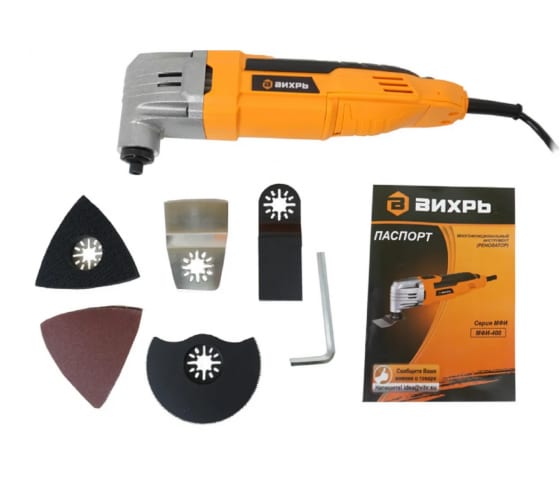 Многофункциональный инструмент-реноватор Вихрь МФИ-400 в кейсе предназначен для выполнения различных работ: для распиливания и разрезания древесных материалов, пластмассы, гипса, цветных металлов, плитки, для сухого шлифования и полирования небольших поверхностей, для удаления остатков клея, штукатурки, бетона, лакокрасочного покрытия. Имеет небольшой вес и габариты, поэтому с ним легко работать долгое время.