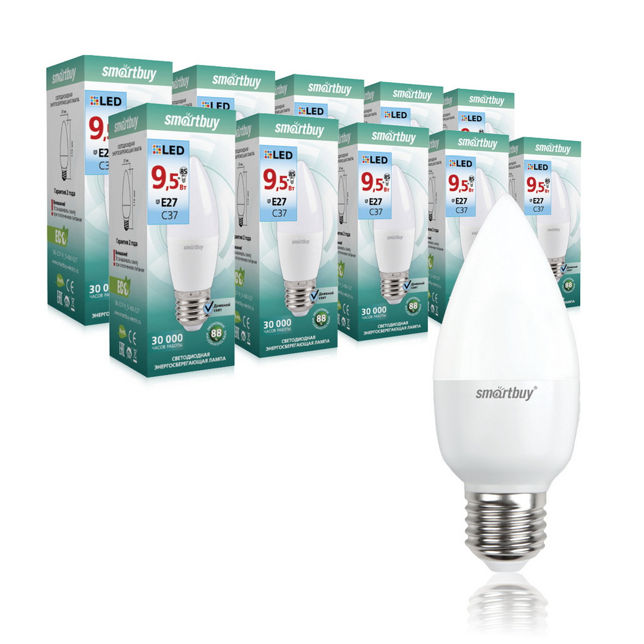 Лампа светодиодная LED-C37 9,5Вт-4000K-E27 Smartbuy в Комсомольск-на-Амуре