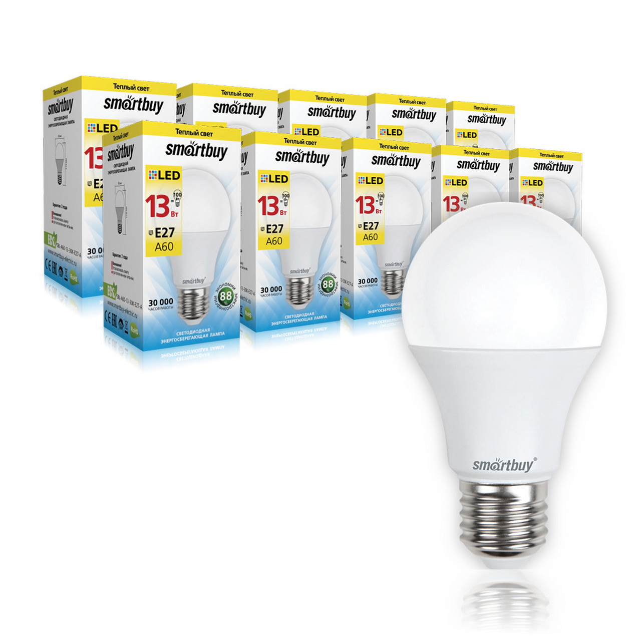 Лампа светодиодная LED-A60 13Вт-3000K-E27 Smartbuy