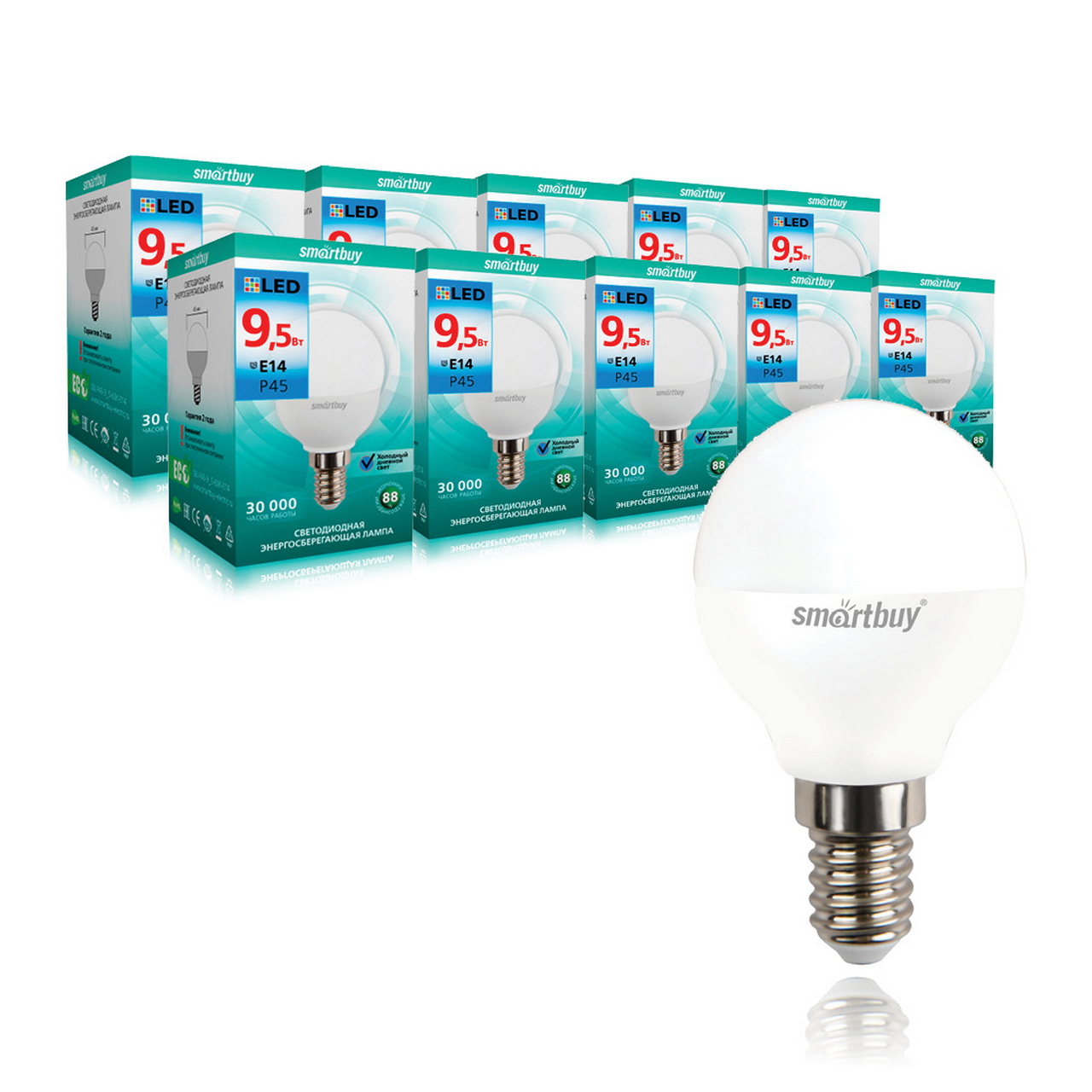 Лампа светодиодная LED-P45 9,5Вт-6000K-E14 Smartbuy в Комсомольск-на-Амуре