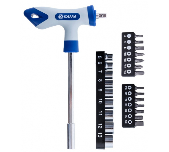 Набор 24 шт,Отвертка КОБАЛЬТ Т-образная с набором бит и торц. головок 1/4" в Комсомольск-на-Амуре