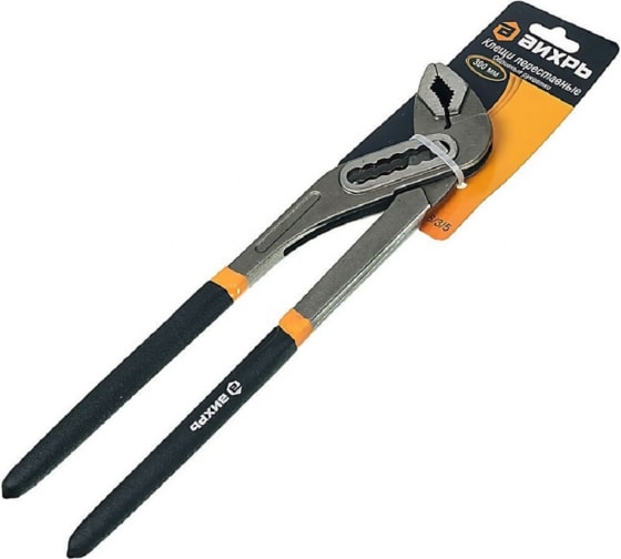 Переставные клещи 300 мм обливные рукоятки Вихрь удобны в использовании при работе с крепежом или любыми объектами с большим разбросом в размерах. Наличие нескольких ступеней раскрытия губок обеспечивает минимальные усилия для сжатия.
