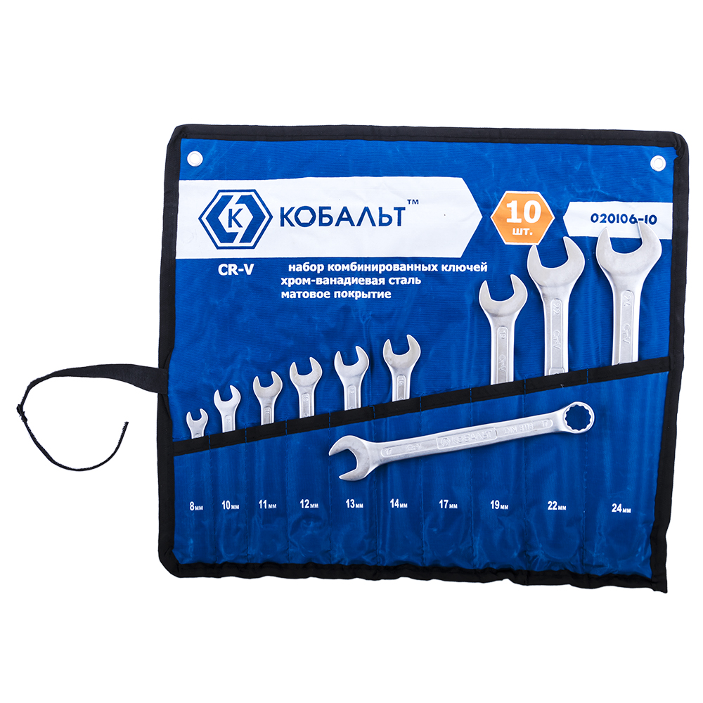 Набор ключей комб. КОБАЛЬТ 8,10-14,17,19,22,24 мм (10 шт.) чехол в Комсомольск-на-Амуре