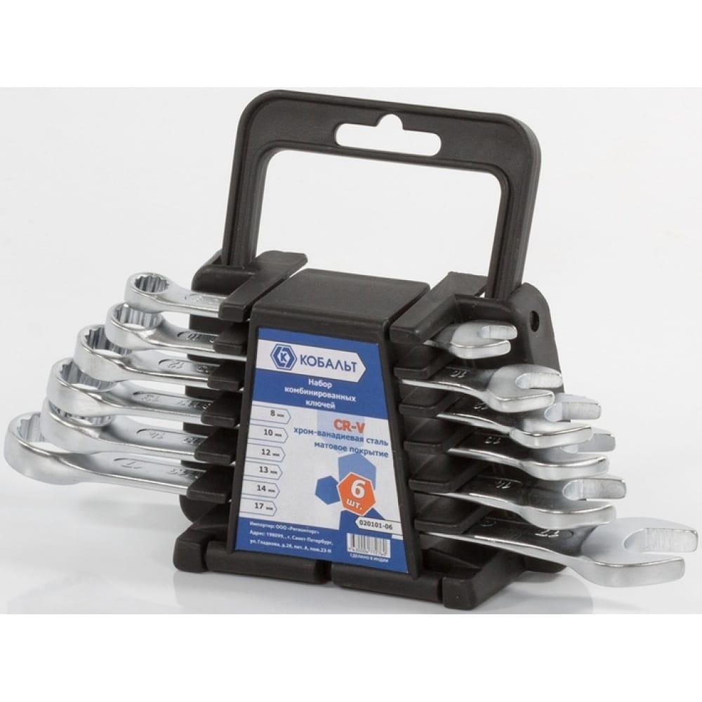 Набор ключей Кобальт позволит вам справиться с крепежом, располагающимся в любом месте, даже самом труднодоступном. Представленный комплект состоит из комбинированных ключей, имеющих рожковый и накидной профили одинакового размера. Для изготовления инструментов, присутствующих в наборе, использовался высококачественный материал - хромованадиевая сталь, которая подарила им превосходную износостойкость, прочность и долговечность. На каждом этапе производства проводится контроль качества, что гарантирует длительный срок эксплуатации ключей. Набор ключей Кобальт поставляется в удобном пластиковом держателе, в котором для каждого ключа отведено отдельное место. В представленный комплект входит шесть ключей со следующими размерами захвата: 8x8 мм, 10x10 мм, 12x12 мм, 13x13 мм, 14x14 мм и 17x17 мм.