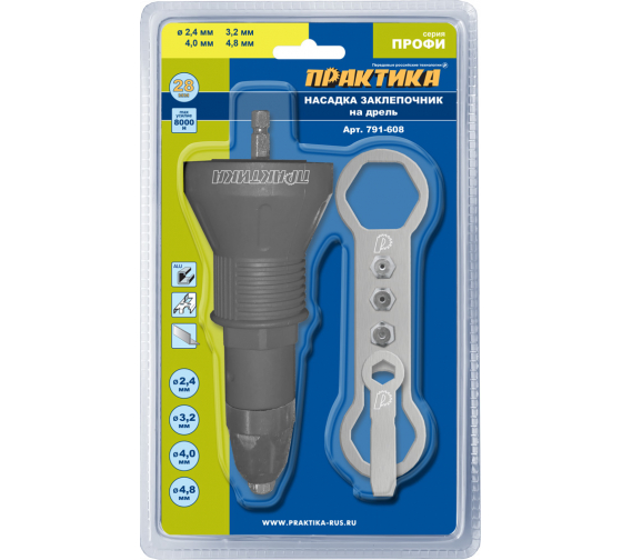 Заклепочник ПРАКТИКА насадка для шуруповерта для заклепок 2,4-4,8 мм пластик. корпус в Комсомольск-на-Амуре