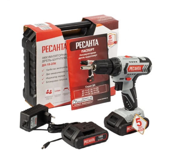 Шуруповерт акк. РЕСАНТА ДА-18-2ЛК, 18В Li-Ion, 2*2,0 А*ч, кейс в Комсомольск-на-Амуре
