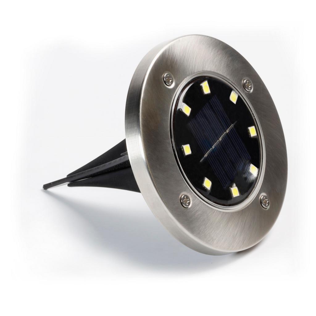 в цветной упаковке 1 шт Батарея: 1 шт. 1,2 В 300 мАч AA Ni-Mh Солнечная панель: поликристаллическая 2 В x 60мАч Светодиоды: белый, 8 шт Режимы работы: режим белого свечения Основной материал: нержавеющая сталь+пластик Размер изделия: 115x130 мм Размер цветной коробки: 120x120x36 мм IP56