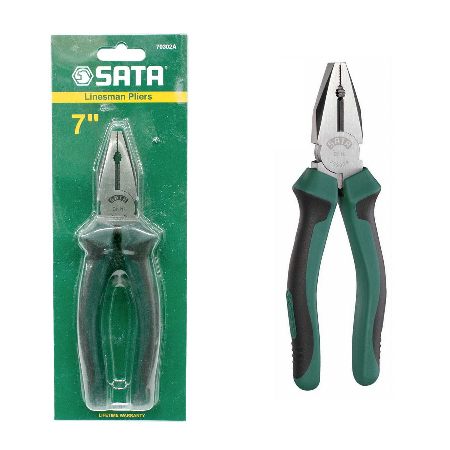 Пассатижи 7 дюймов Sata служат для захвата и изгибания заготовок, а также перекусывания проволоки из меди диаметром до 2,6 мм, из стали - 2,4 мм и проволоки средней жесткости - до 2 мм. Двухкомпонентные рукоятки с упорами для ладони обеспечивают уверенный обхват инструмента в процессе работы. Ширина рабочей части составляет 25 мм, толщина - 13 мм. Изделие соответствует стандарту DIN 5236.