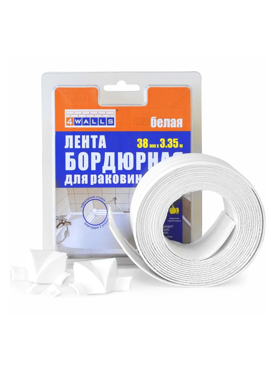 Лента-бордюр 38мм*3,35м для раковин и ванн, с 2 уголками, фигурная, белая